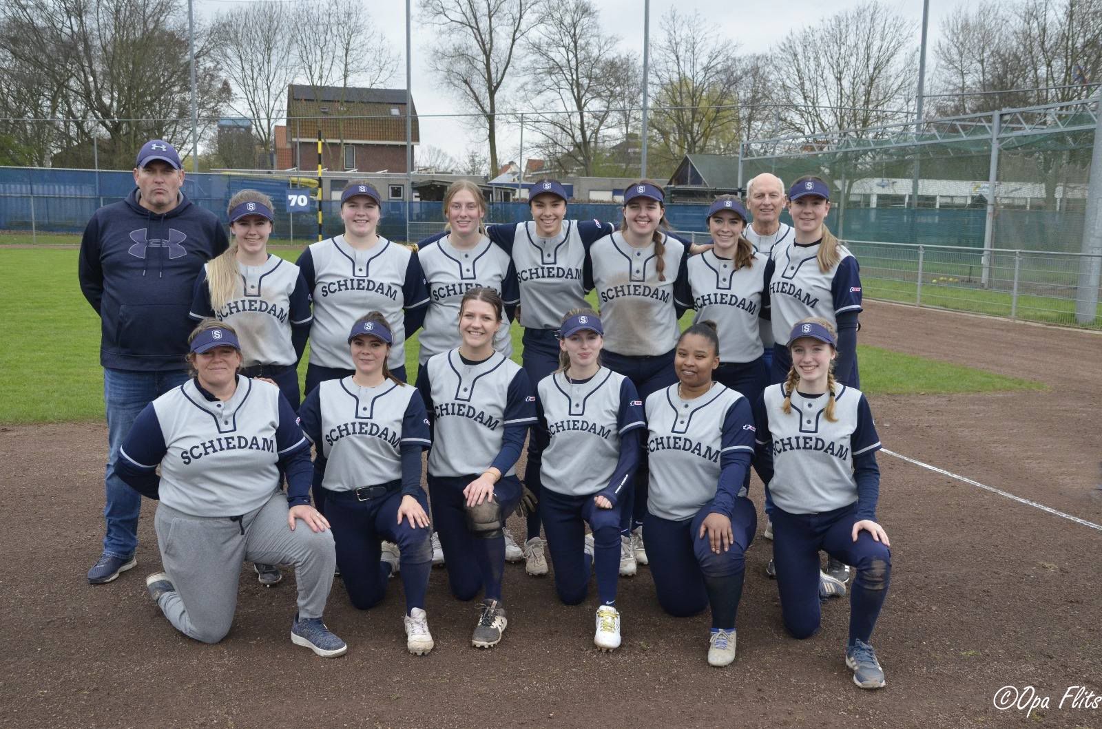 SB1 boven v.l.n.r. Joost van de Ark scoorder, Michelle van Diggelen, Annick van der Ark, Tess Broxks, Ella James, Mirthe van de Erve, Isa Fredrikze, Kyara Krijnberg, Kees Bol.